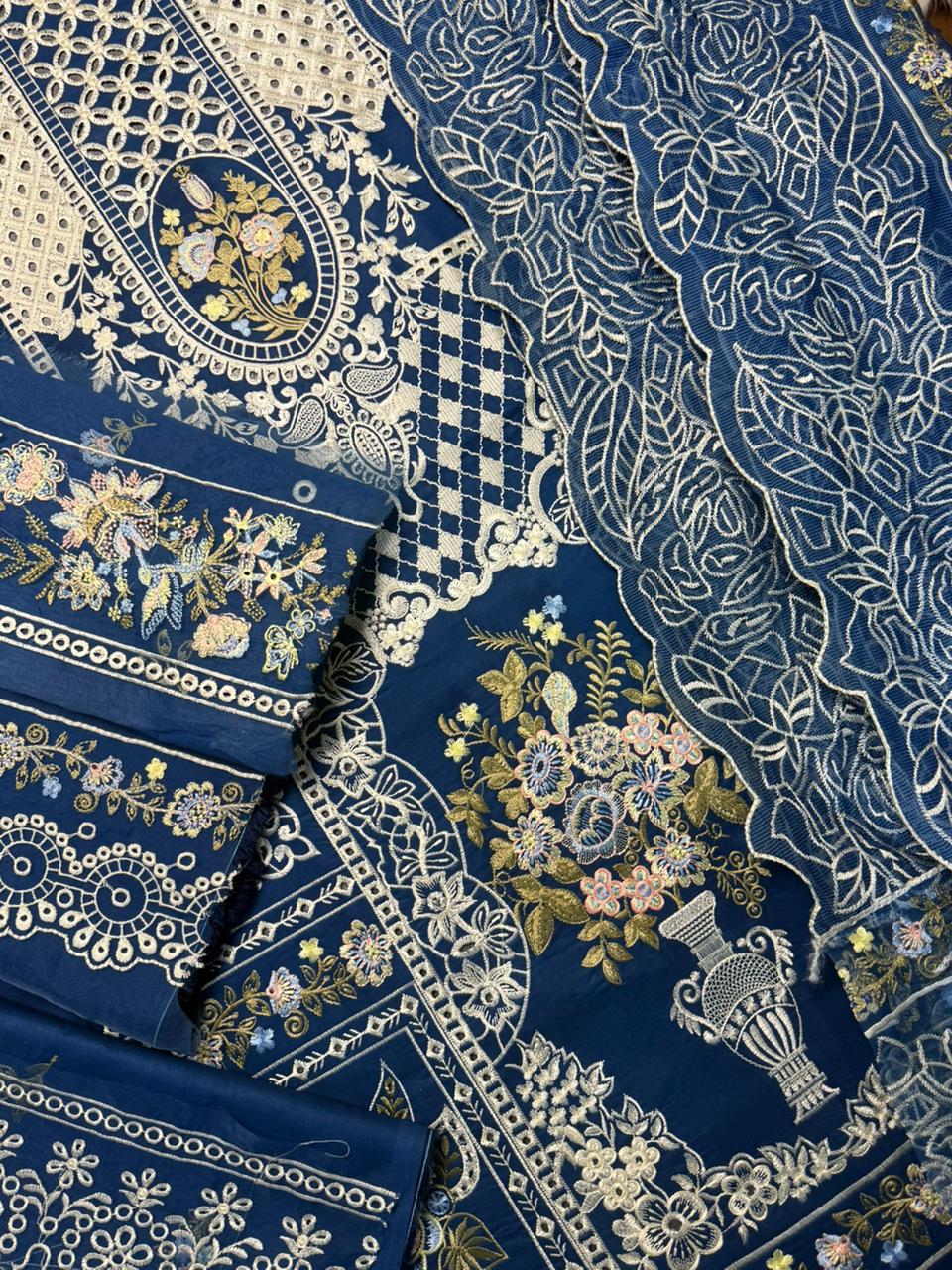 MAHNOOR 3pc Summer Casual Collection 🌻LAWN 90/88 AIR JET BEST WORLD CLASS QUALITY STUFF🌻front Full Chickenkari Emb🌻Palo+cutwork khaadi net Emb dupata🌻 Seleeves Emb 🌻Back Emb🌻Dyed trouser 🌻 Damn+sleeves+trouser patch Emb